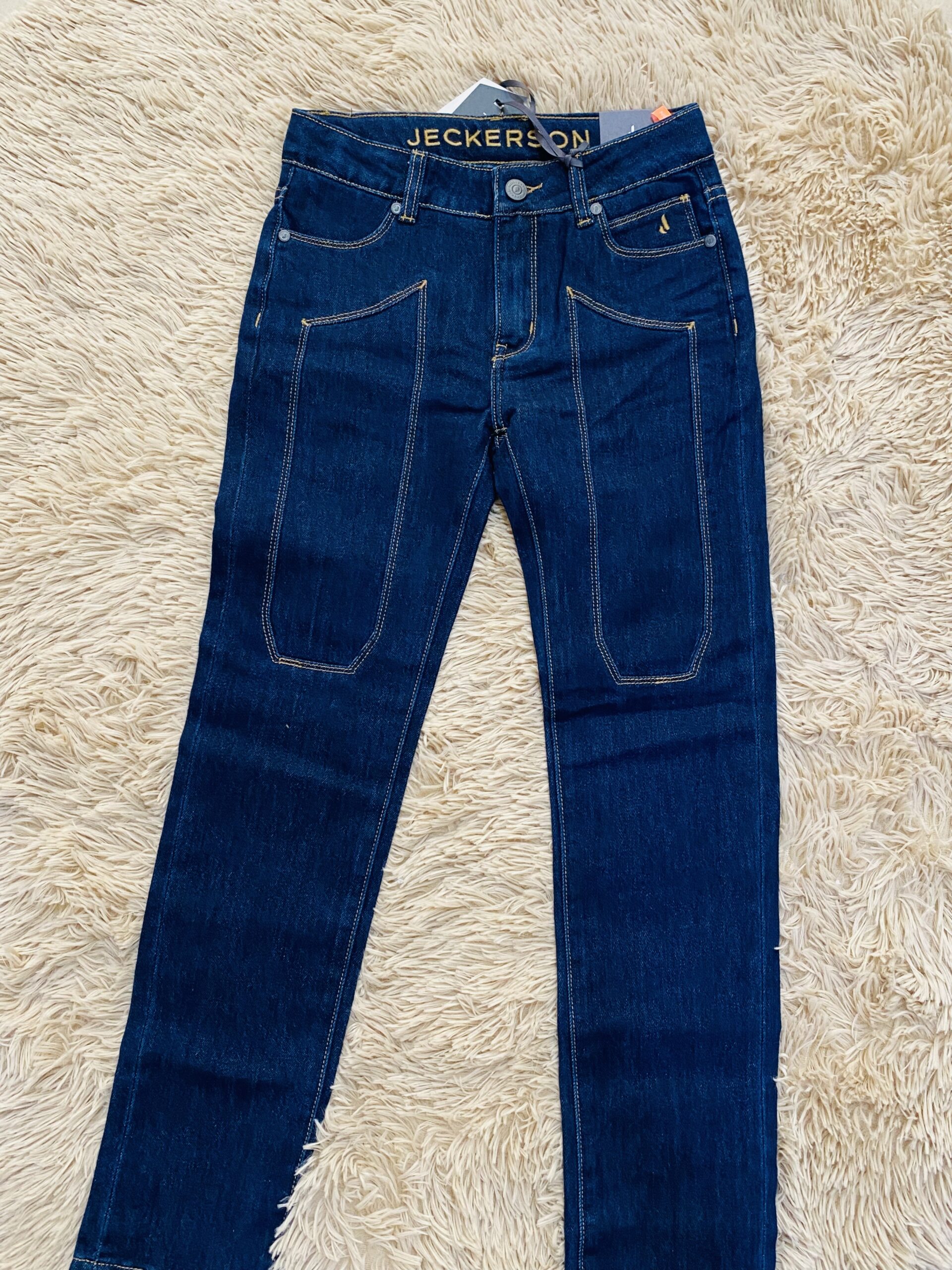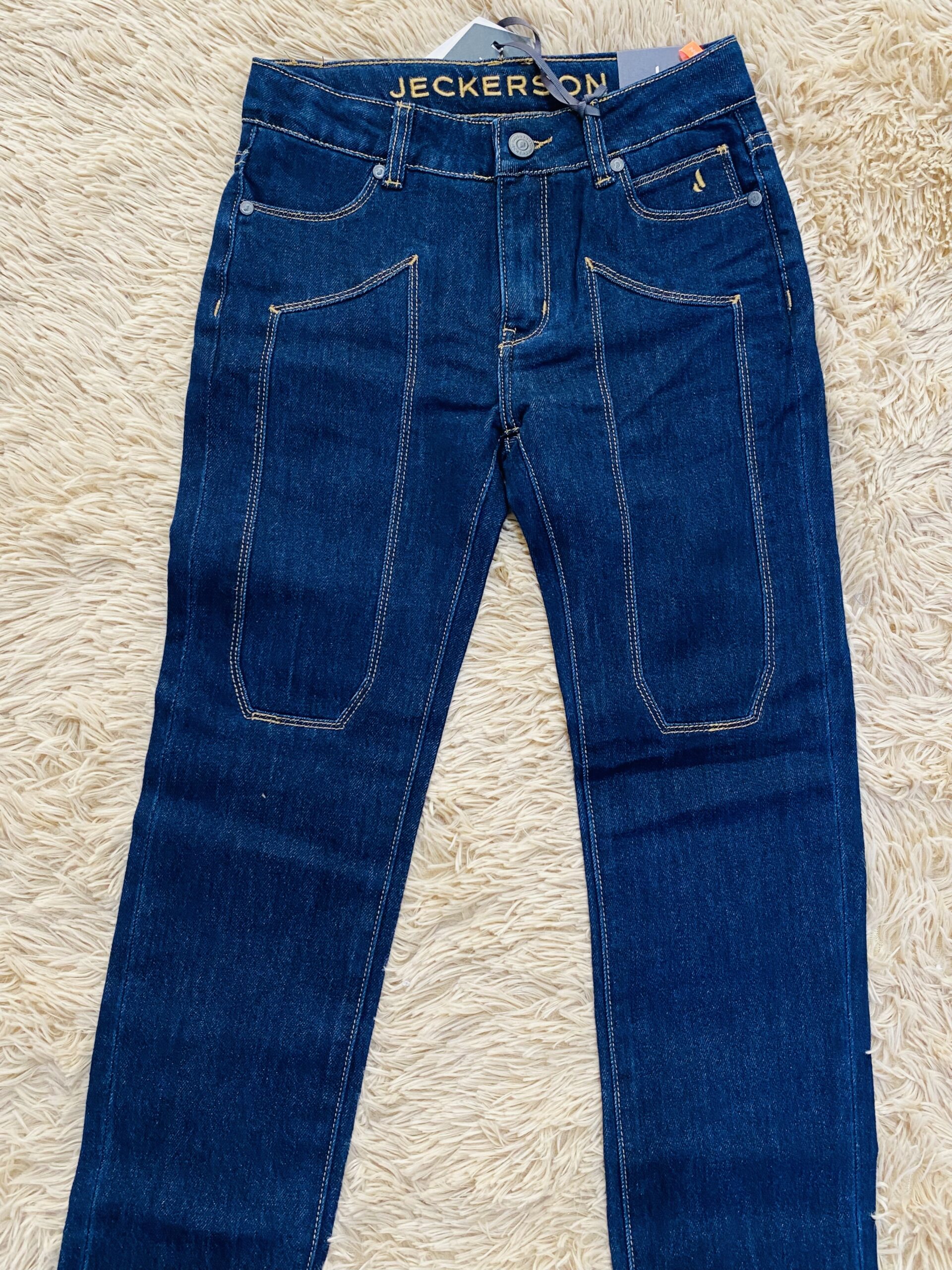 jeans jeckerson 5 tasche con toppe tono su tono, lavaggio blu scuro vestibilità regular