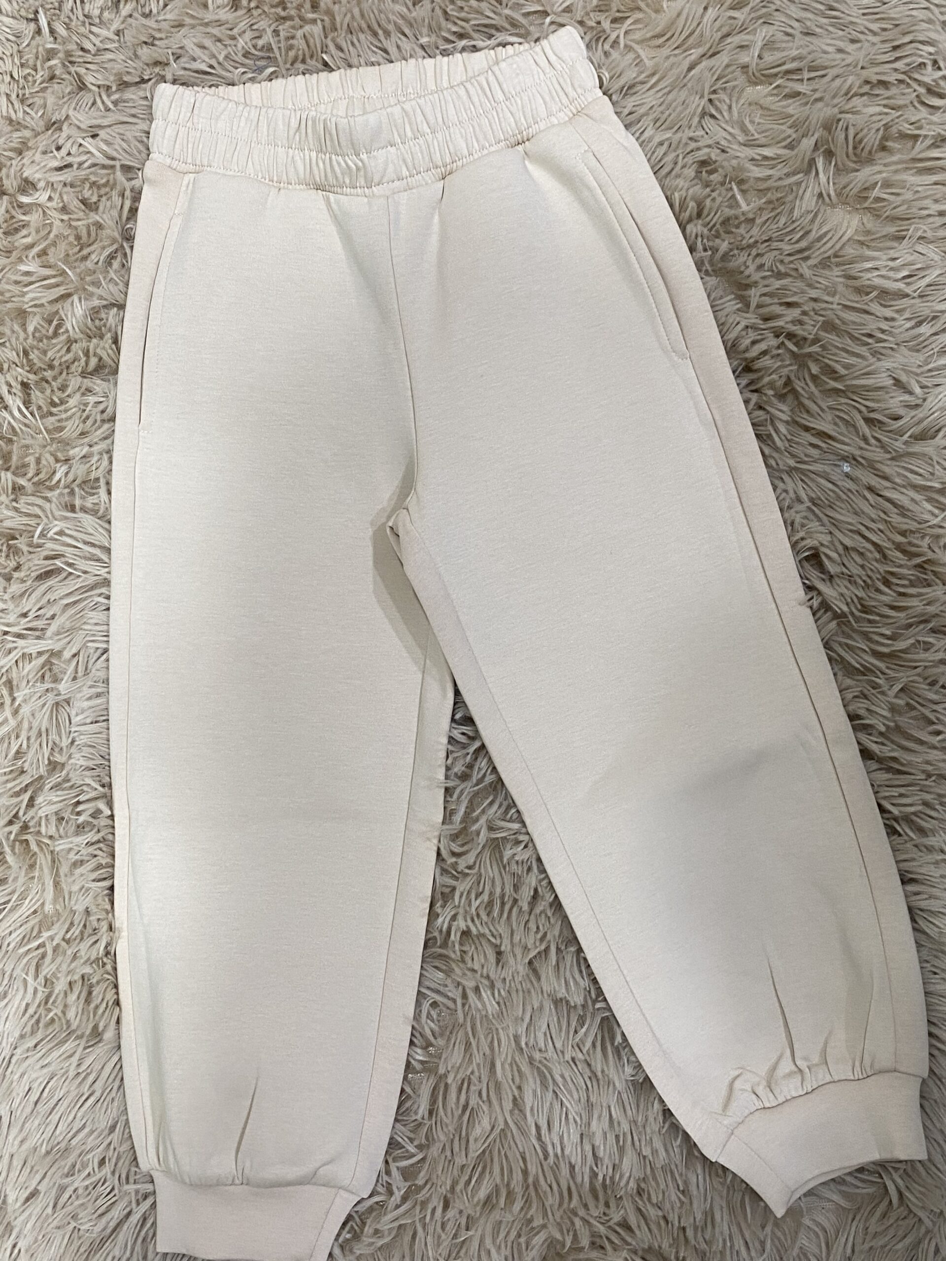 Pantalone con elastico alla caviglia, morbidissimo da bambina, variante colore Burro